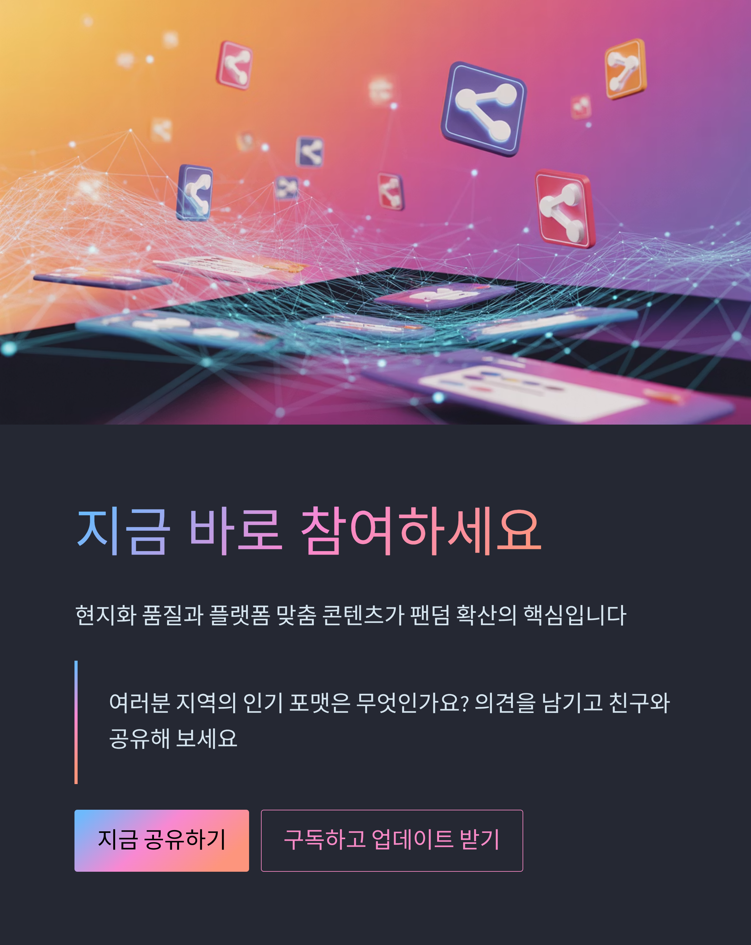 이 글은 각 지역의 반응을 한 눈에 살펴보고, 팬덤 트렌드의 핵심 포인트를 실무적으로 활용할 수 있는 인사이트로 정리합니다. 문제를 짚고, 지역별 특징에 맞춘 전략과 참여 방법까지 제시하겠습니다.